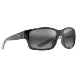 Les lunettes Maui Jim Mangroves sont en nylon Noir brillant avec intérieur gris et sont équipées de verres minéraux polarisés Gris Neutre